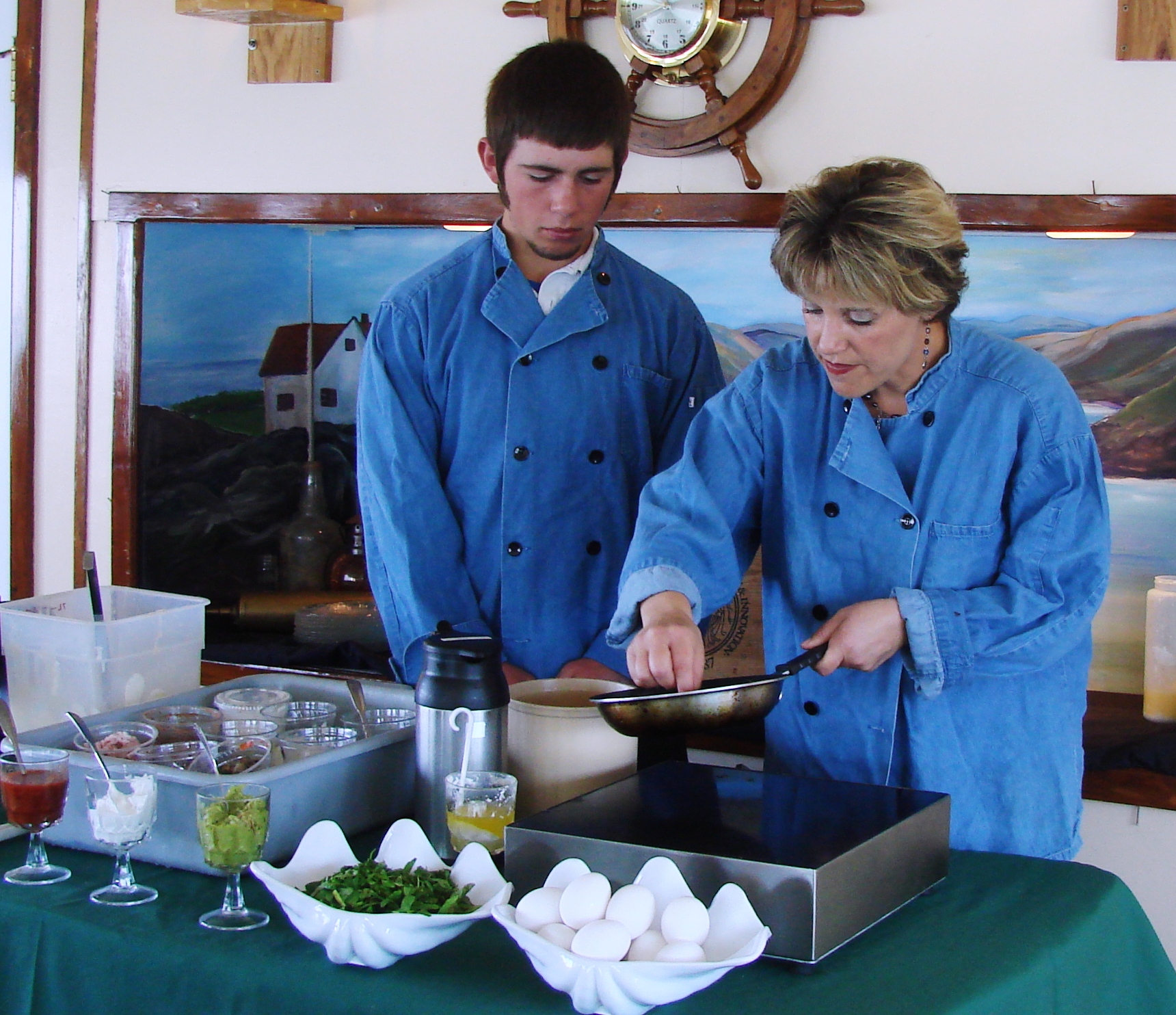 (Pictured is Annie training Arthur Able, who will become the omelette chef once Annie takes the helm as captain. Custom made omelets. Yum!)