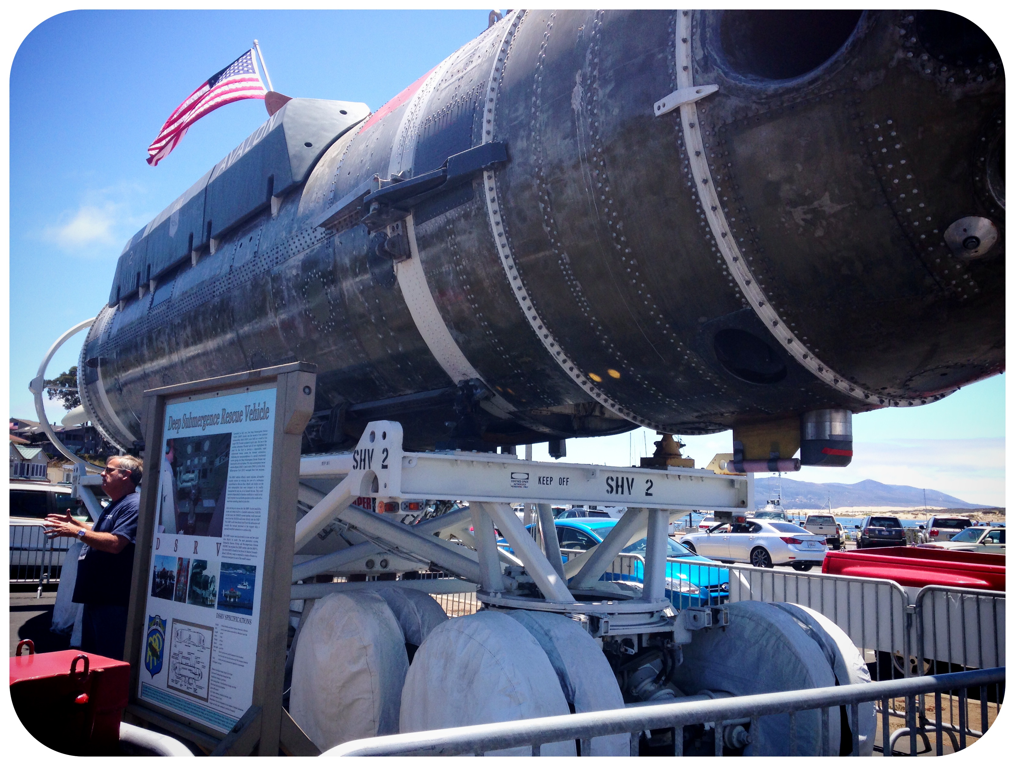 Larry Newland previews the Rescue Submarine before visitors climb inside…by way of the underbelly hatch…currently in the parking lot on Front Street, Morro Bay CA waiting for its permanent home.